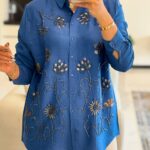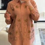 شومیز گلدوزی پولک دوزی ترک اورجینال طرح برگ