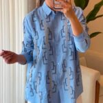 شومیز جین ابریشمی ترک اورجینال طرح رنگارنگ