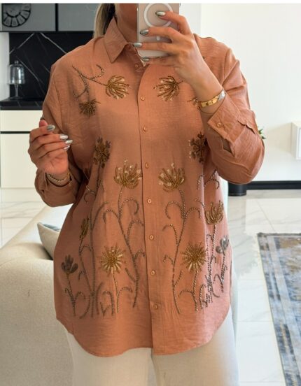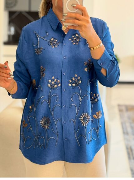 شومیز گلدوزی پولک دوزی ترک اورجینال طرح لیراتا