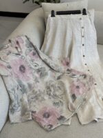 کت و شلوار لینن ایتالیایی طرح گل ابی - مشکی