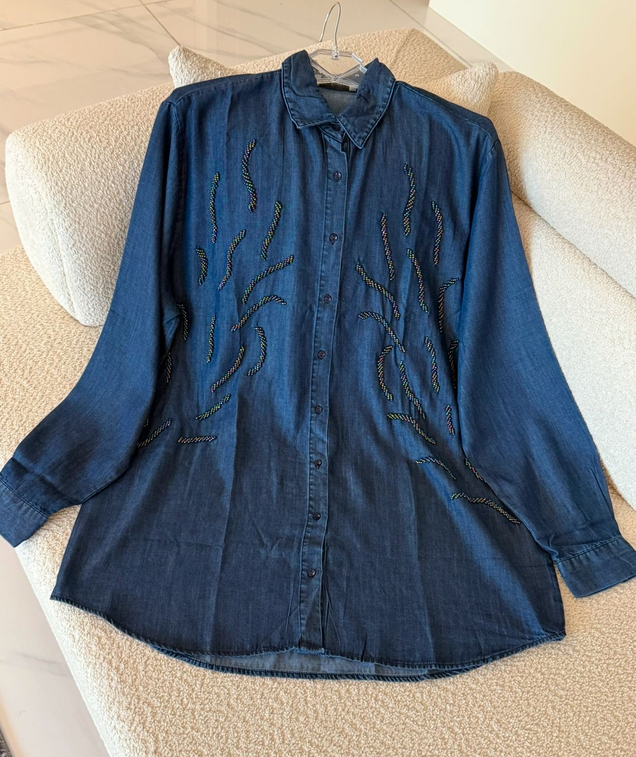 شومیز جین ابریشمی ترک اورجینال طرح رنگارنگ