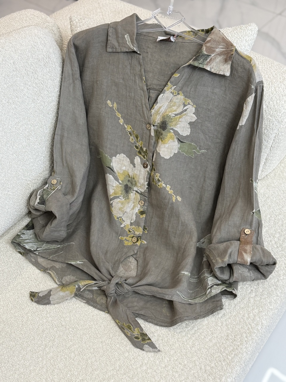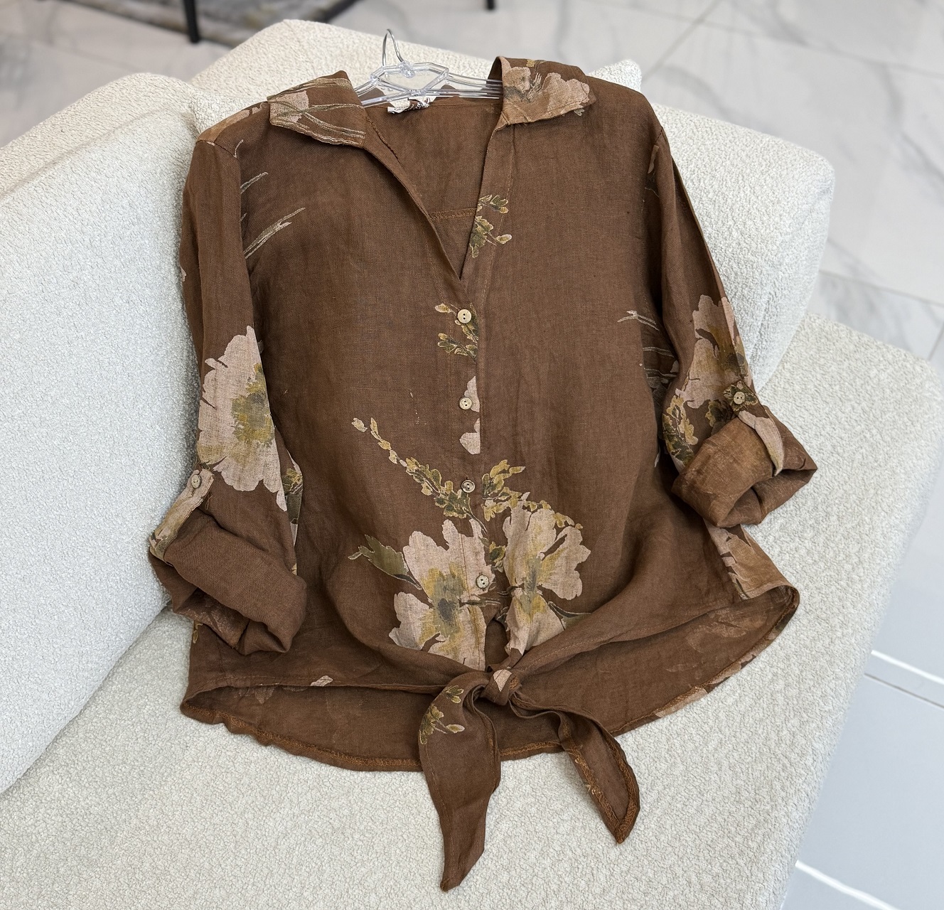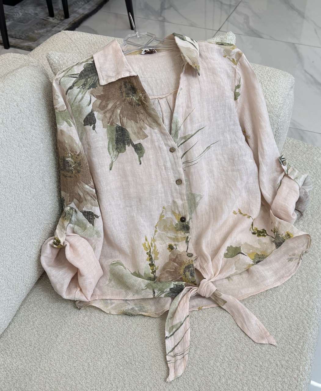 شومیز لینن ایتالیایی طرح رز جلو گره ای – گرم بالا