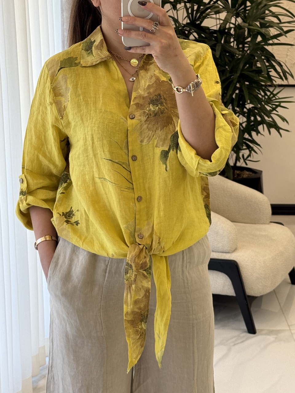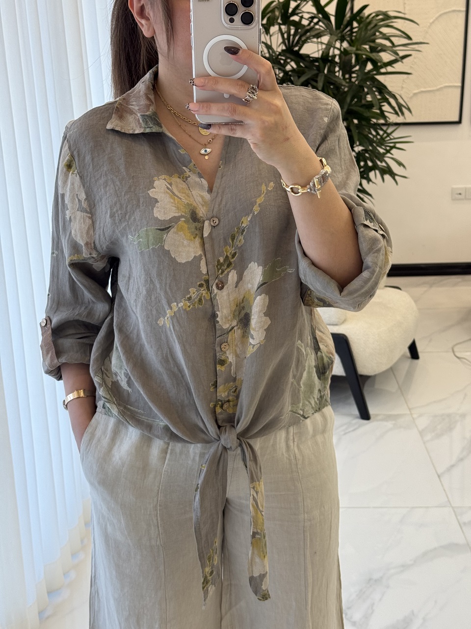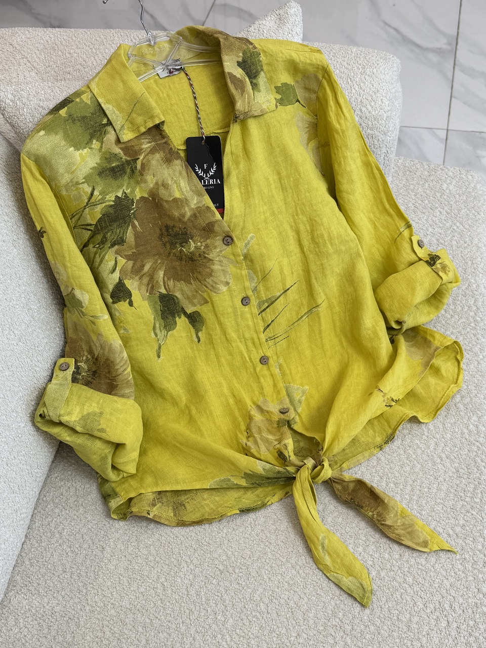 شومیز لینن ایتالیایی طرح رز جلو گره ای – گرم بالا