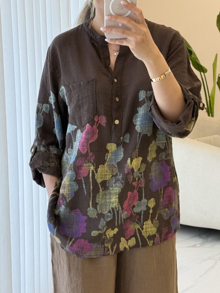 شومیز لینن ایتالیایی طرح گل ابریشم