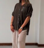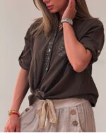 شومیز لینن ایتالیایی طرح ساده جلو گره ای
