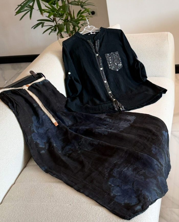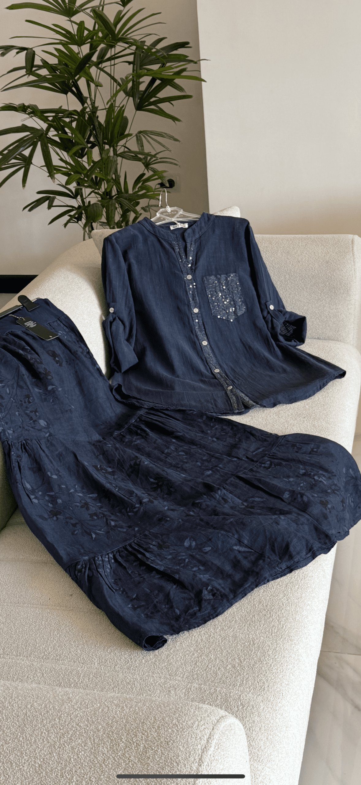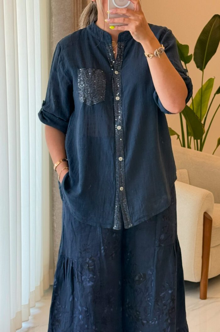 شومیز لینن ایتالیایی جیب پولکی تمام دکمه