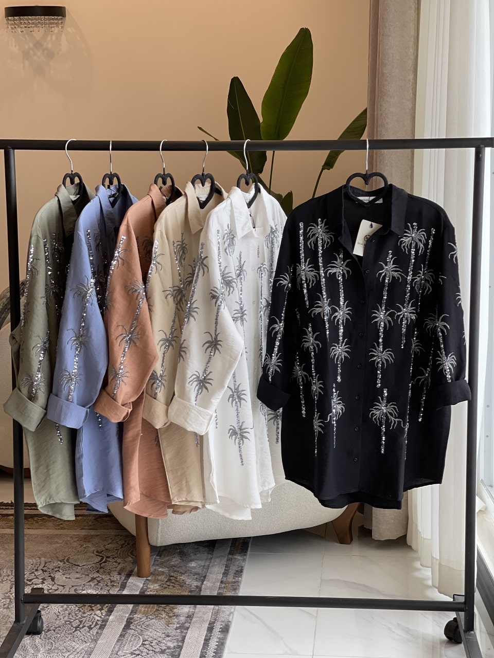 شومیز پولکدوزی و گلدوزی ترک اورجینال طرح نخل
