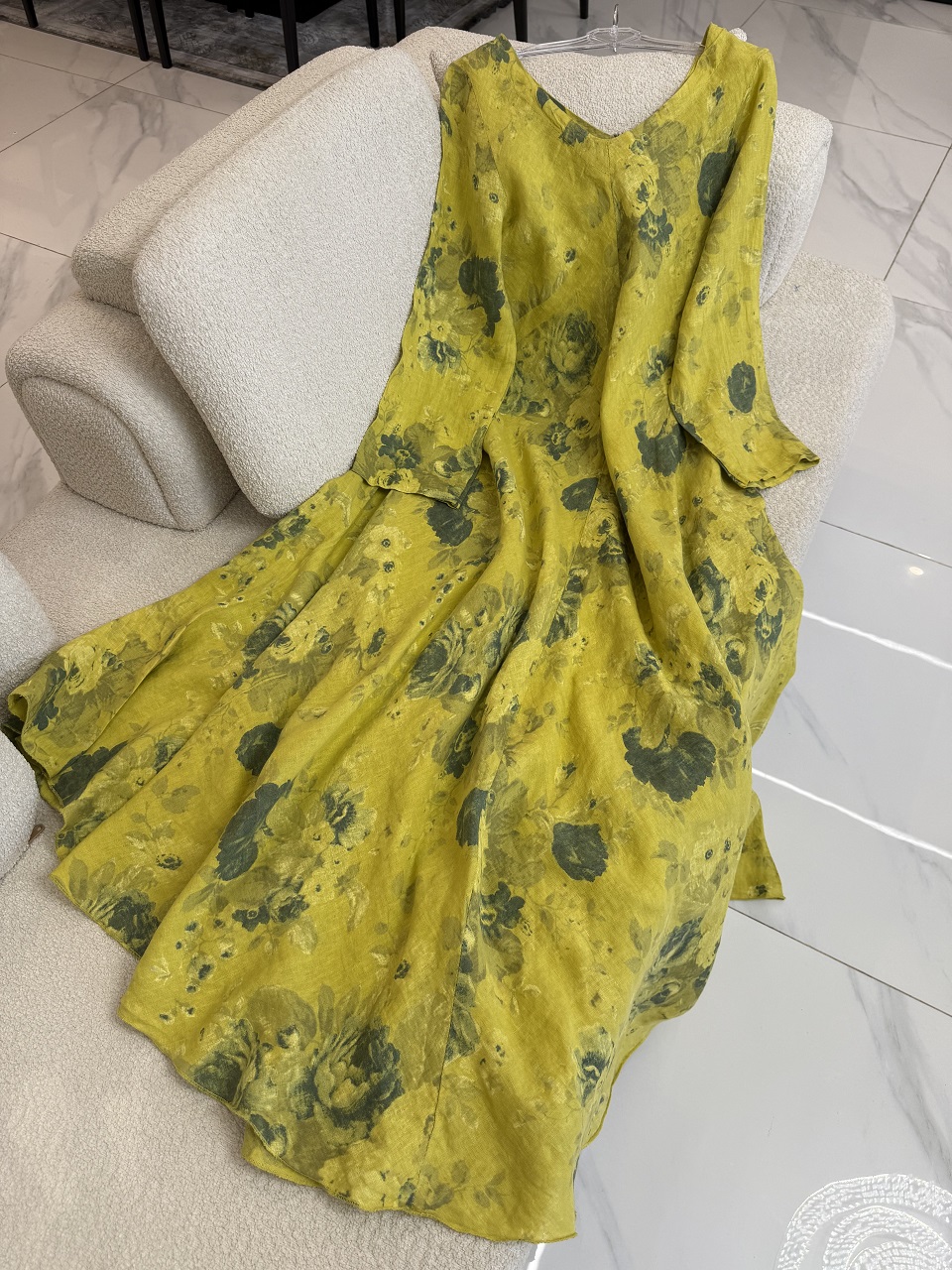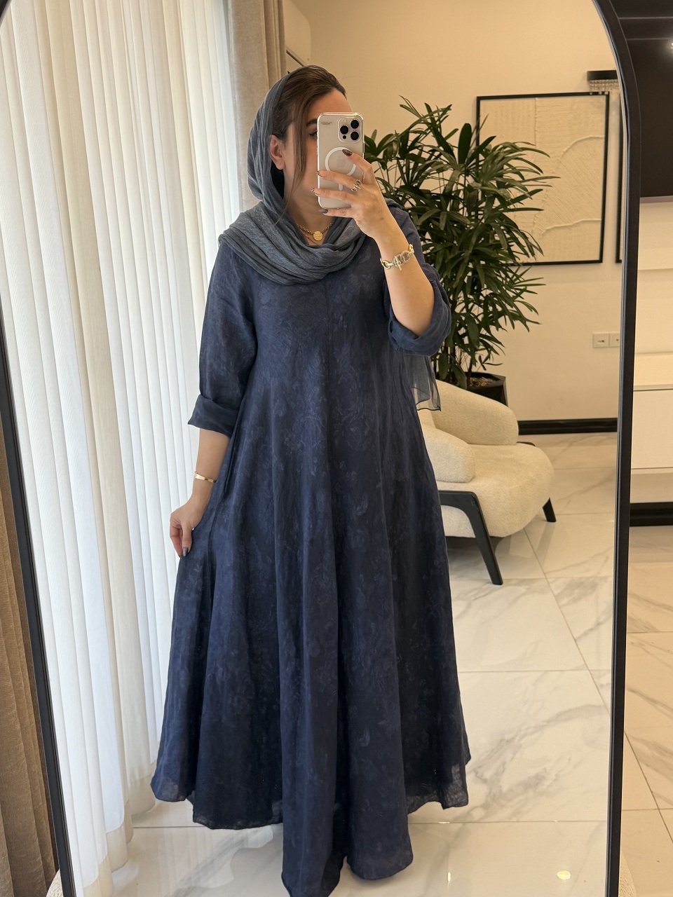 شومیز لینن ایتالیایی طرح یاس آبی - گرم بالا