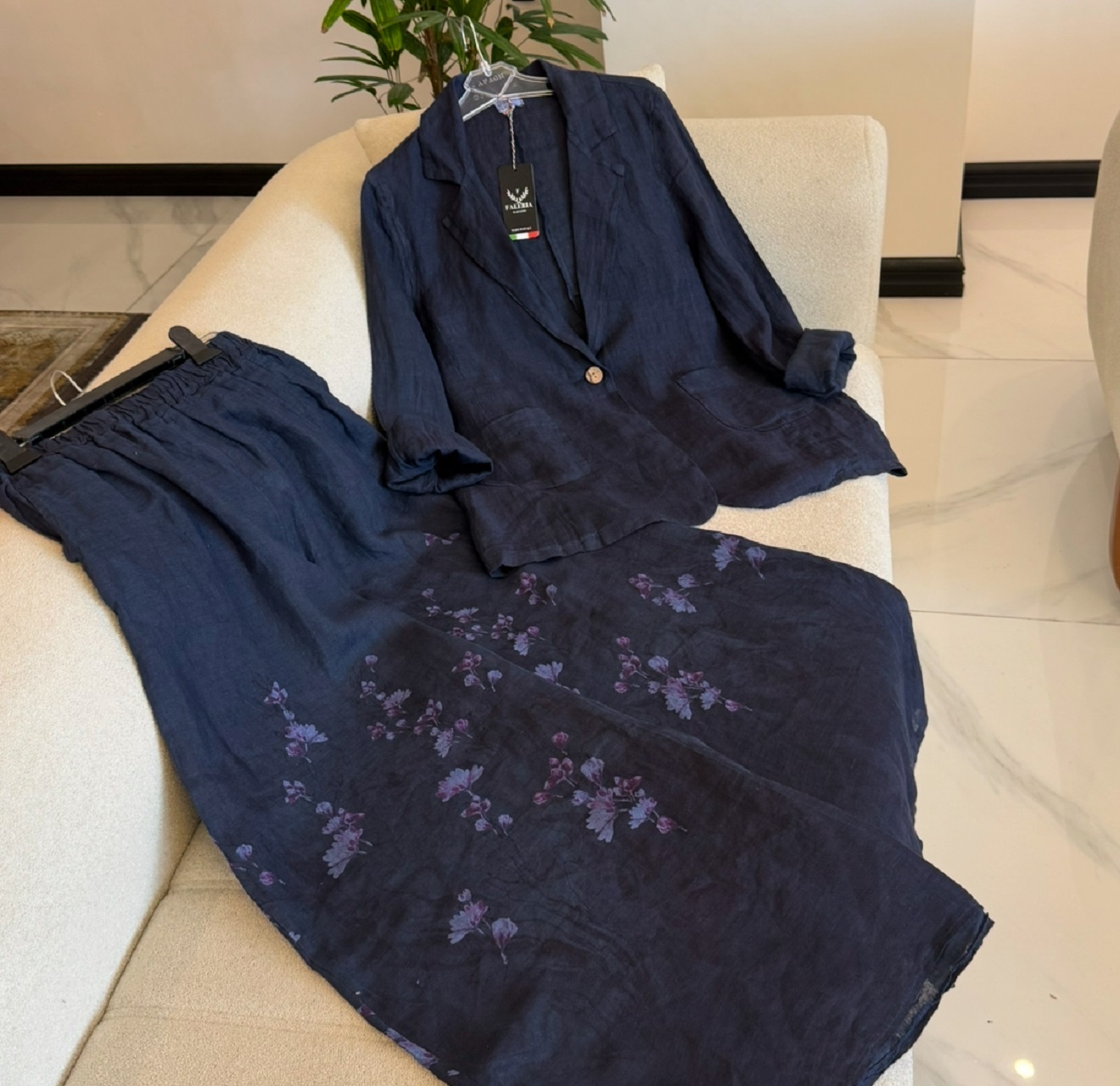 کت و شلوار لینن ایتالیایی طرح گل ریز